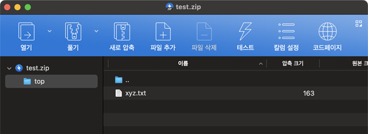 -storeroot:no 압축 파일의 최상위 폴더를 지정하지 않는다. |